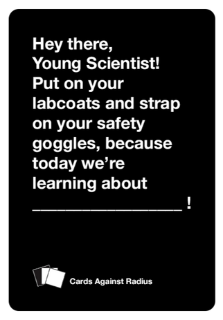 HOW TO PLAY: One randomly chosen player begins as the Card Czar and plays a Black Card. The Card Czar reads the question or fill-in-the-blank phrase on the Black Card out loud. Everyone else answers the question or fills in the blank by passing one White Card, face down, to the Card Czar.